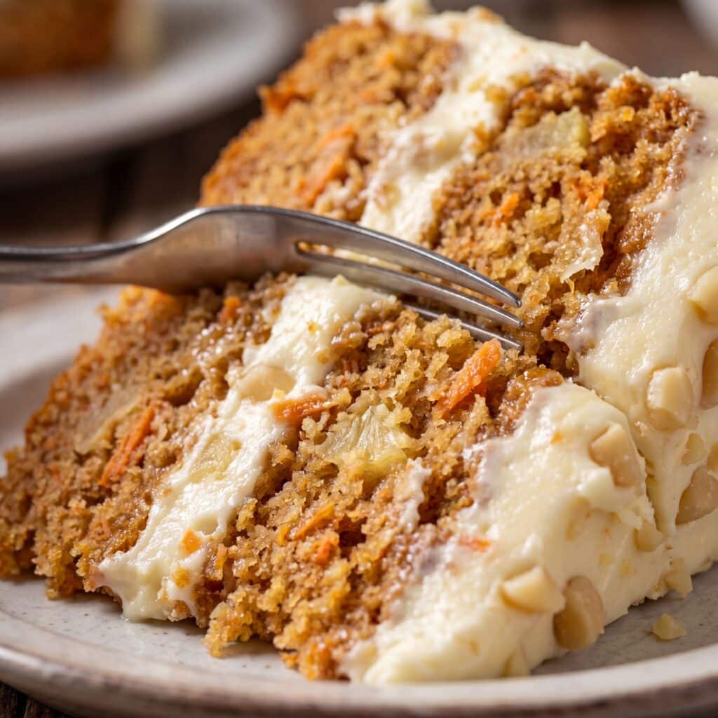 Carrots play a role here. They bring natural sweetness, which means you’re not relying only on sugar. Pineapple too, it adds flavor and moisture without making things feel overly rich. It doesn’t turn the cake into health food, obviously, but it changes the balance.