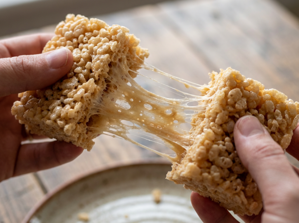 Rice crispy treats don’t need real reheating, but if they feel a little firm, a quick fix helps. Warm a square in the microwave for about five to eight seconds. This softens the marshmallow and brings back the chewy texture without melting the treat